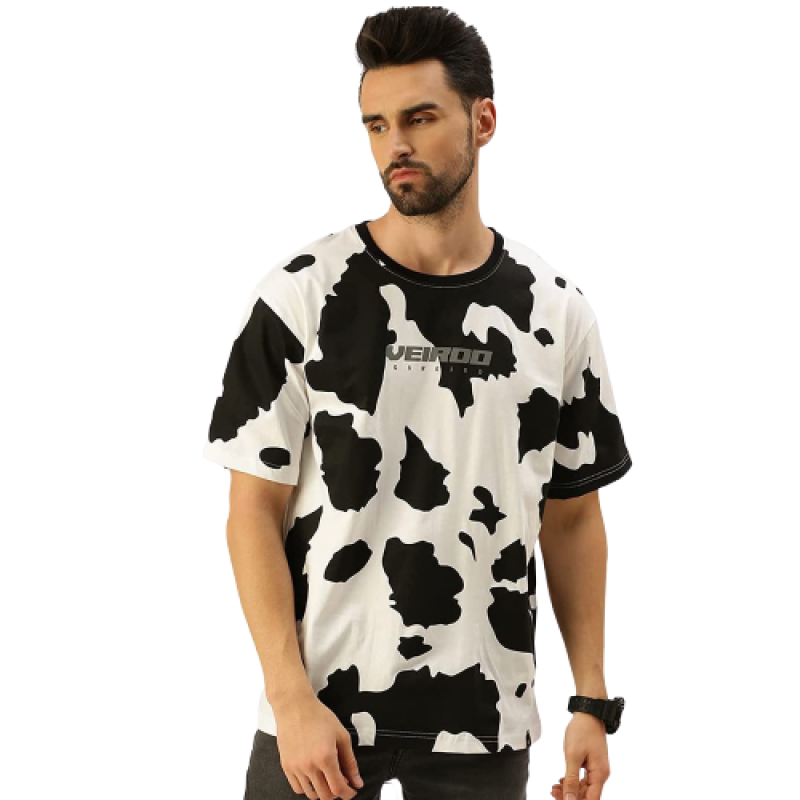 Veirdo 100% Cotton Oversize Drop Shoulder Loose Fit Round Neck Half Sleeve Animal Printed T-Shirt fo