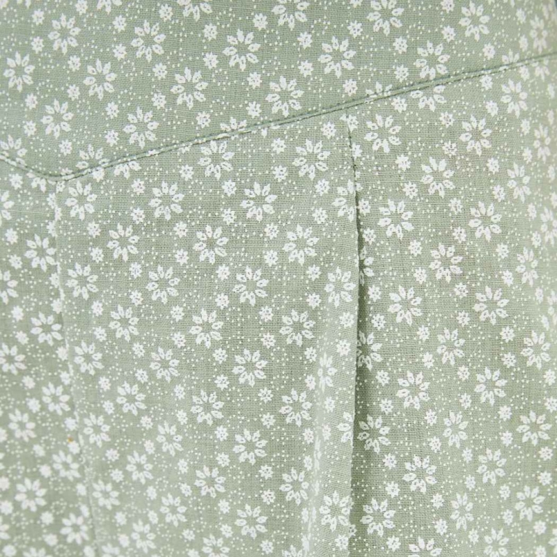 شورت عادي متوسط الارتفاع مطبوع باللون الأخضر، يتميز بحزام خصر مطاطي برباط تضييق للإغلاق.