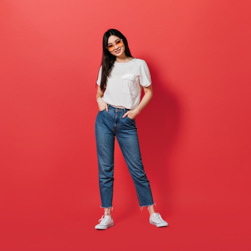 تي شيرت أبيض مستدير الرقبة للنساء