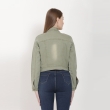 سترة صلبة مغسولة بأزرار ، لها ياقة منتشرة ، 2 جيوب ، زر للإغلاق ، أكمام طويلة ، حافة مستقيمة ، وقطن.