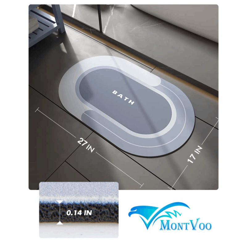 Innovative Absorbent Bath Mat- Advanced nanotechnology and up to 90% porosity surface allow water penetrates fast.