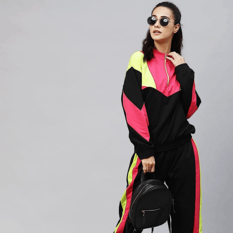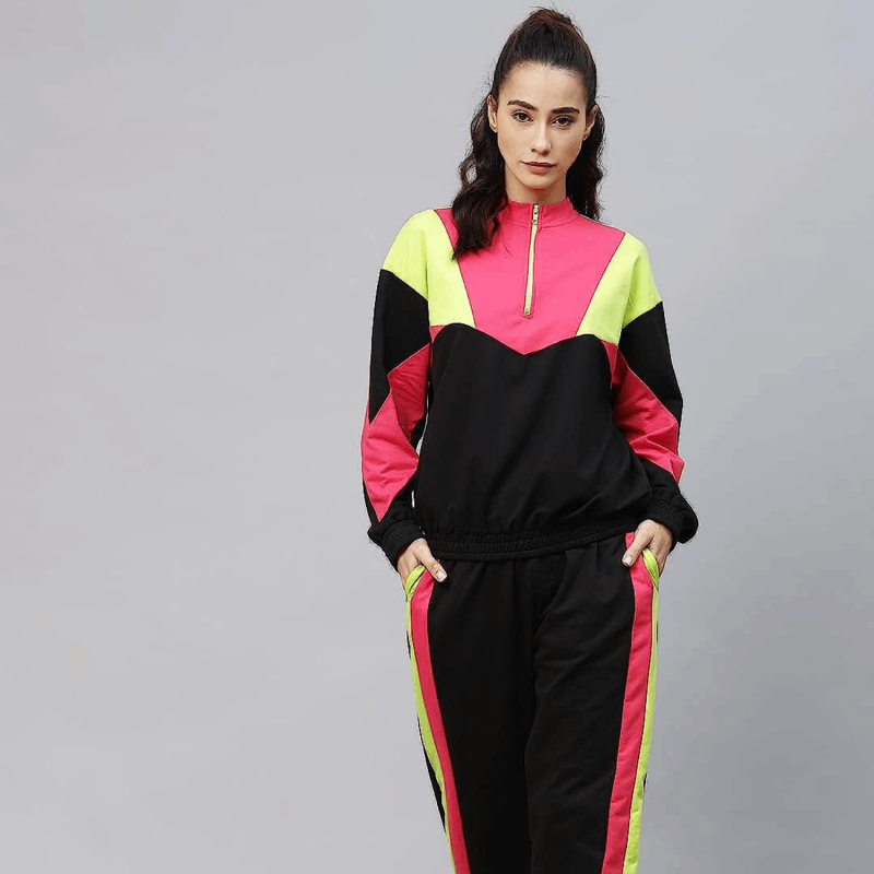 Black & Pink Colourblocked Track Suit