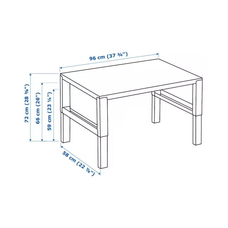 • The desk is easily adjusted to 59, 66 or 72 cm by using the knobs on the legs.