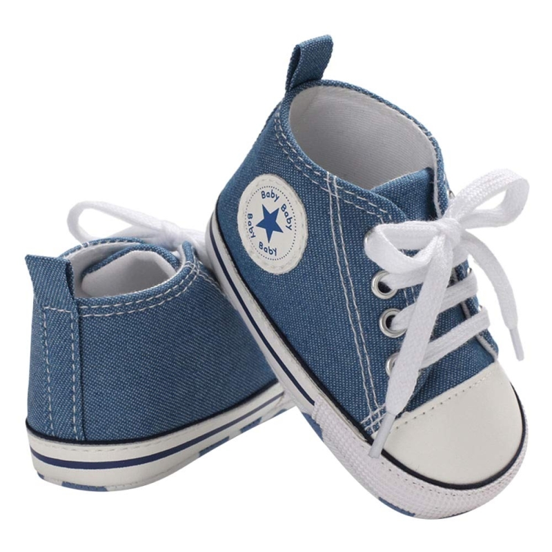 Zapatos de encaje de lienzo de tela para bebés en color azul