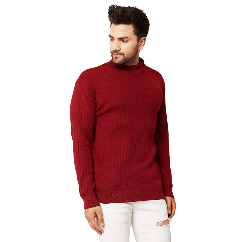 Men suéter de lana de invierno de manga completa para hombres, rojo
