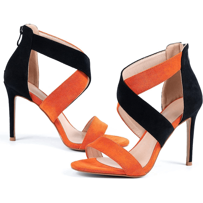 Corte de mujer Stiletto tacones altos Correa de tobillo Sandalia de tacón apilada para el dedo del pie para casualidad