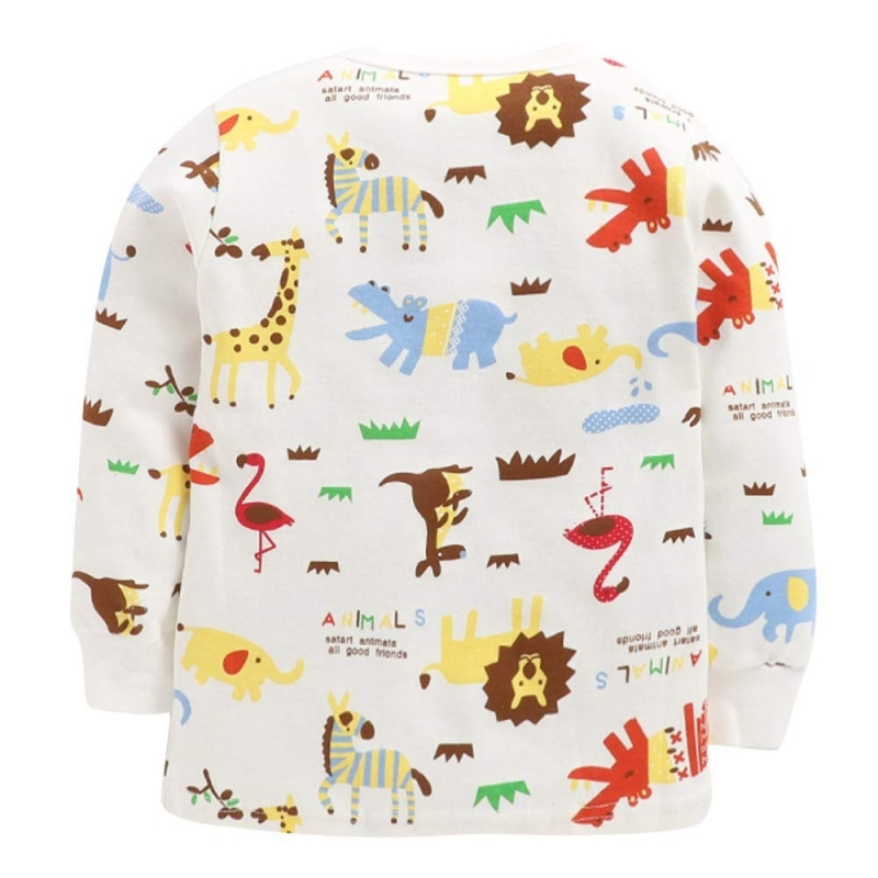 Hopscotch Boys Cotton Animal Print Top and Pajama Set in White Colour