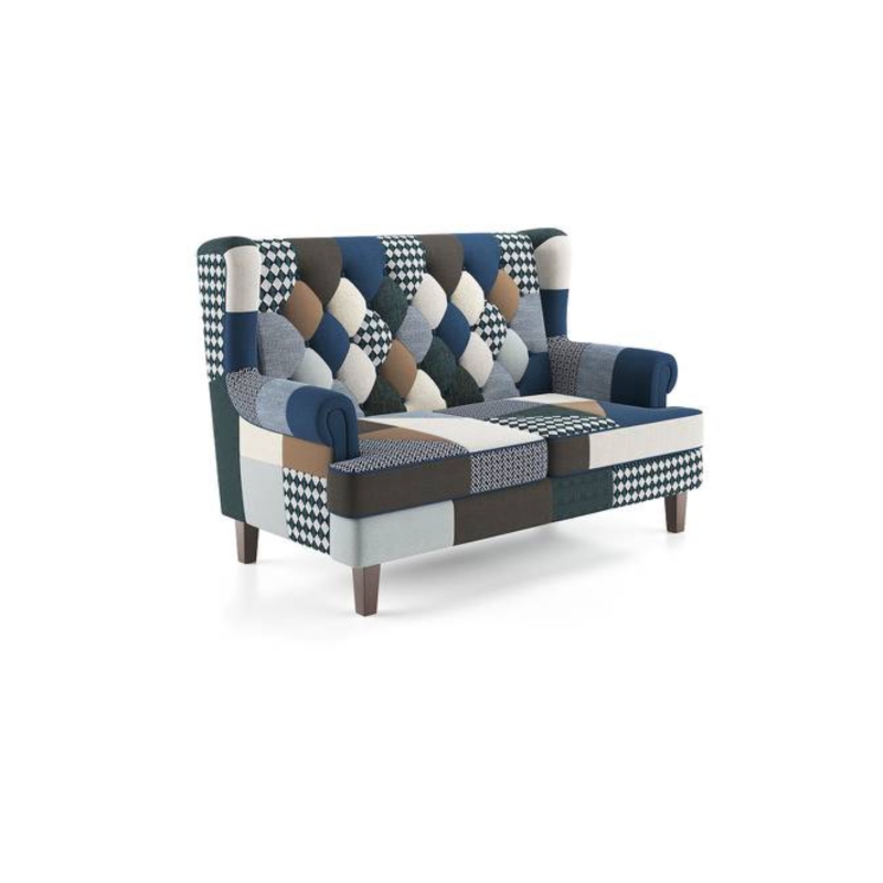 Minnelli 2 Seater Fabric Loveseat In Indigo Patch Work Colour