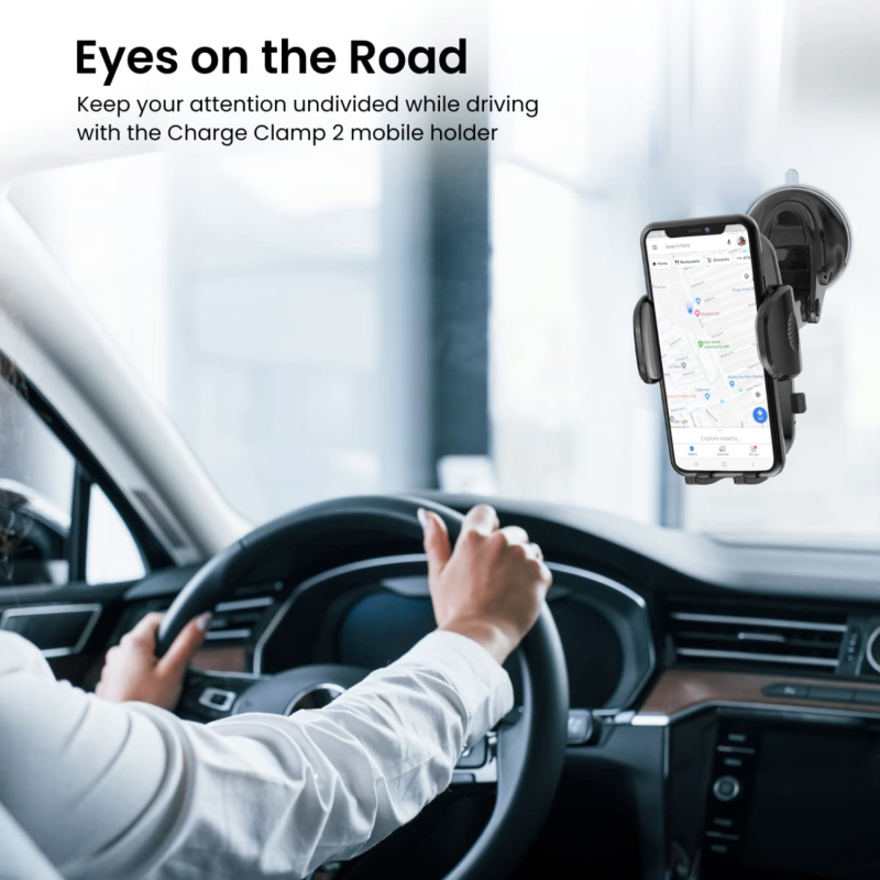 [DRIVE SAFE, DRIVE EASY] - Enjoy your driving with safety with the Charge Clamp 2 mobile holder. Just fix your device in the holder and operate it at almost the same eye level. In other words, never get your eyes off the road while you drive.