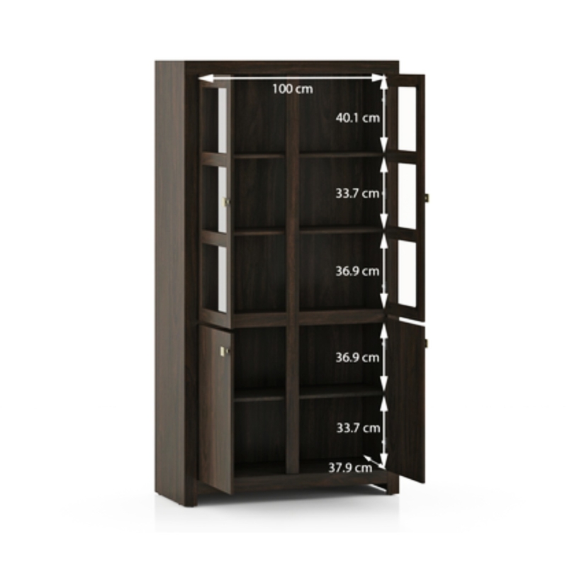 • Show your best, store the rest. This mantra defines this ergonomic product in every sense. This classic display cabinet blends the best of your needs. The combination of a glass shutter on top and an opaque shutter below makes this the perfect storage solution. It displays all your precious pieces while allowing you to tuck away at the same time.