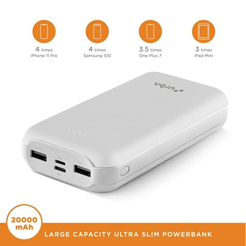 This powerful Power bank from the house of URBN helps you to rule out of the worry of your phone running out of charge. With 20000mAH power, it can charge your phone fast and safely. With matte finish body and light weight, this power bank becomes a stylish accessory and is comfortable to carry around with you everywhere