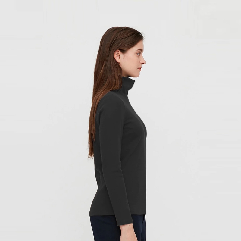 Women Black Solid Turtle Neck T-shirt
