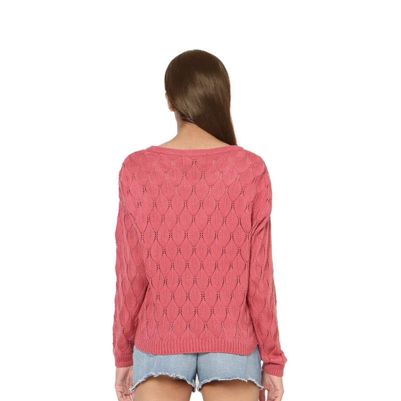• Pink self design pullover ,has a round neck, na pockets, long sleeves, ribbed hem