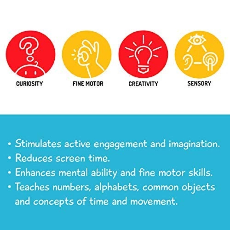 • ONE TOY MULTIPLE SKILLS: Stimulates mental ability & fine motor skills; teaches numbers, alphabets and concepts of time, Reduces screen time, stimulates active engagement & imagination