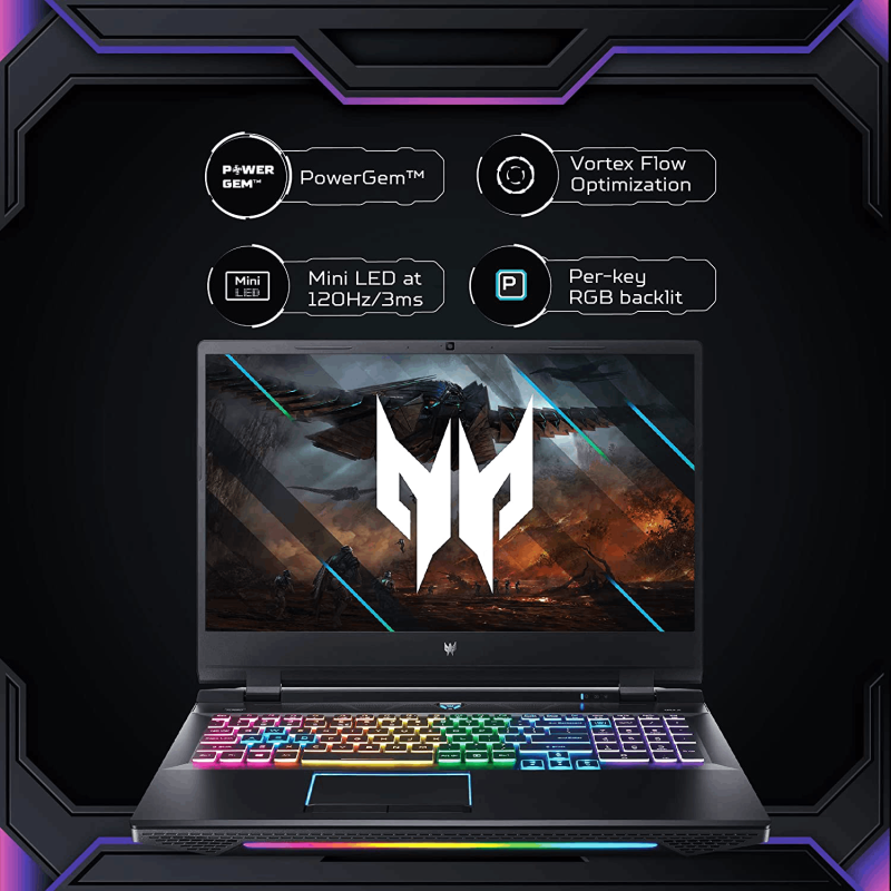 • Blazing-Fast Display: 43.9cm(17.3") display with IPS (In-Plane Switching) technology, Ultra HD 3840 x 2160, high-brightness (SDR mode 480 nits / HDR mode 1000 nits), high color gamut (DCI-P3 100%), Acer ComfyView LED-backlit TFT LCD, integrated Mini LED technology. Supporting frame rate 120Hz and HDR 1000 for gamers who demand the best visual experiences
