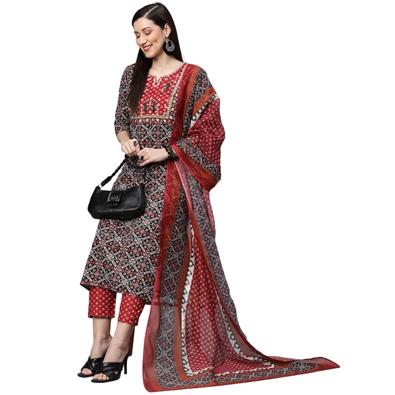 ANNI DESIGNER Women's Cotton Blend Printed Straight Kurta with Pant & Dupatta