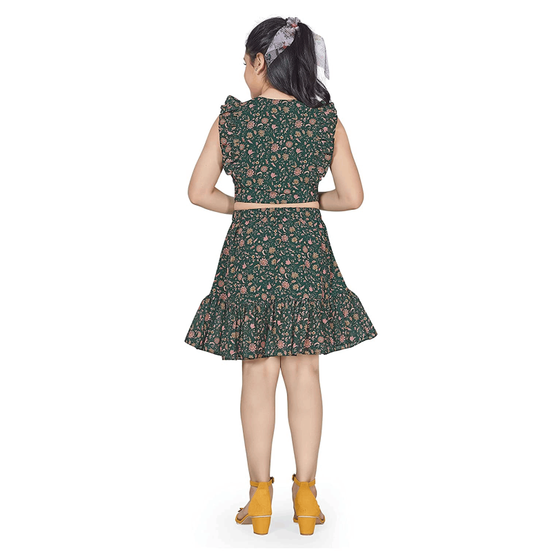 بلوزة جورجيت Pinafore Georgette الخضراء الداكنة للفتاة مع مجموعة ملابس تنورة غير متماثلة