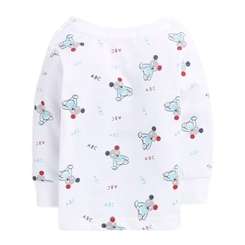 طقم بيجامة بنقشة قطن للأولاد من مزيج القطن وبيجامة بلون أبيض