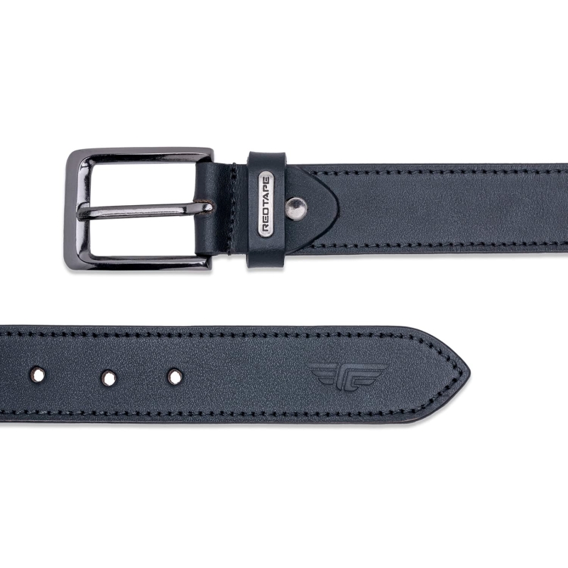 الشريط الأحمر الرجال حزام جلدي أسود