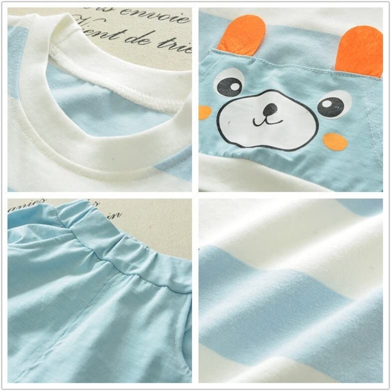 Bold n elegante niños Cartoon Stripe estampado de algodón Media manga y pantalones cortos