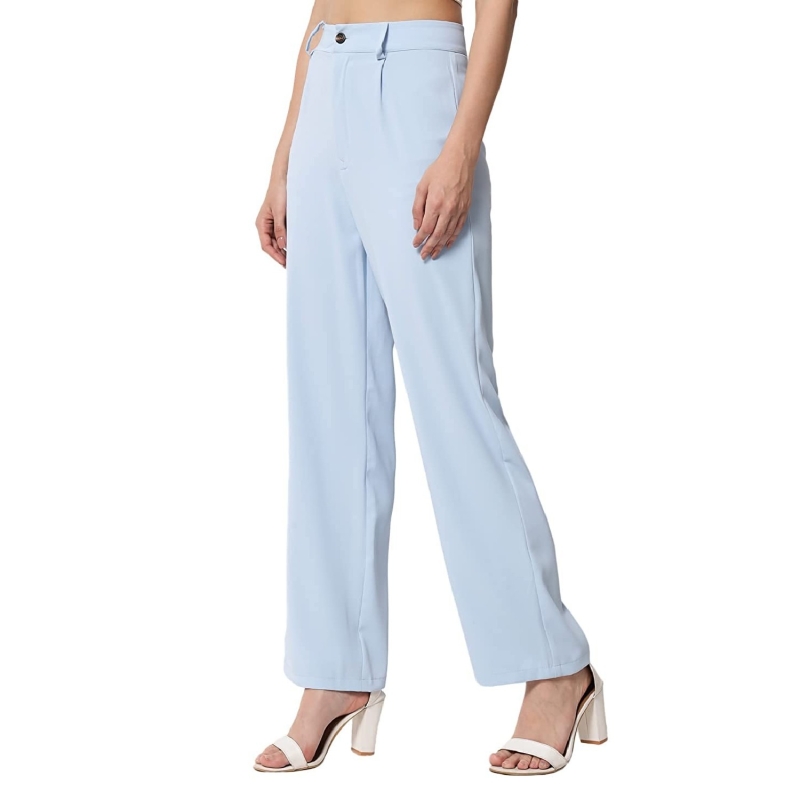 Kotty Women Solid Polyester Blend Blend Blue pantalón