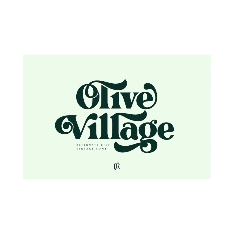 Olive Village es una fuente de visualización hecha principalmente para titulares, títulos y otros textos cortos y es muy adecuada para publicidad, tableros de humor vintage, marcas, logotipos, empaques, títulos, diseño editorial y diseño moderno y vintage.