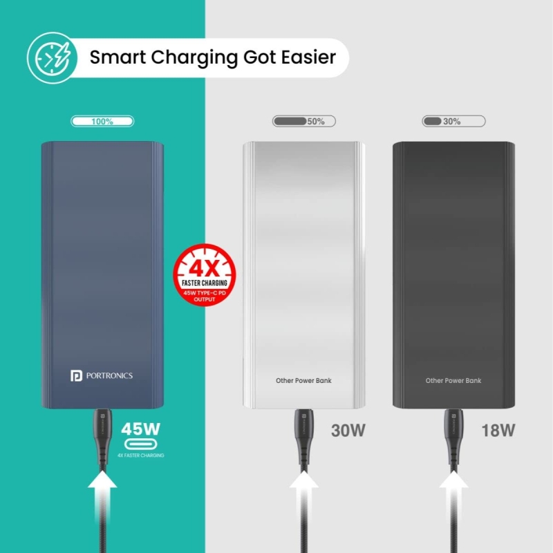Portronics Power 45 20000mAh Power Bank para computadora portátil/móvil con 45w de carga rápida