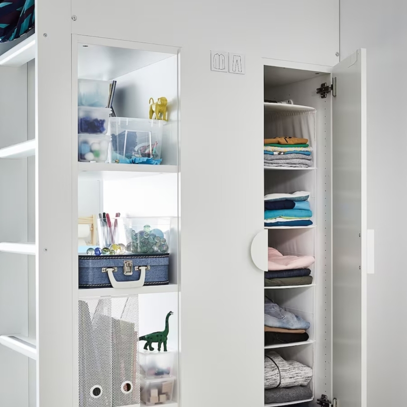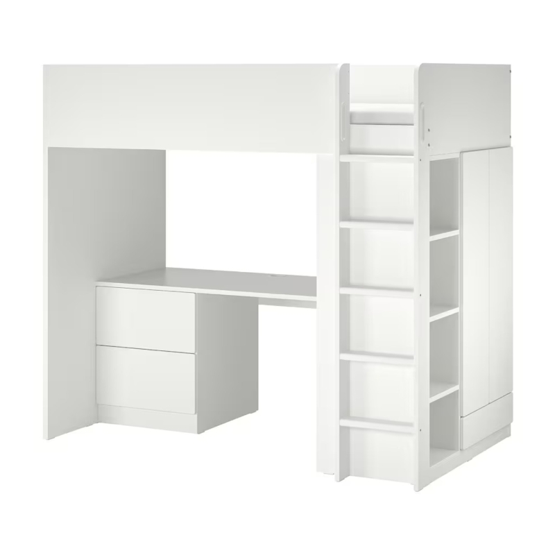 Cama loft småstad, blanco blanco/con escritorio con 3 cajones,