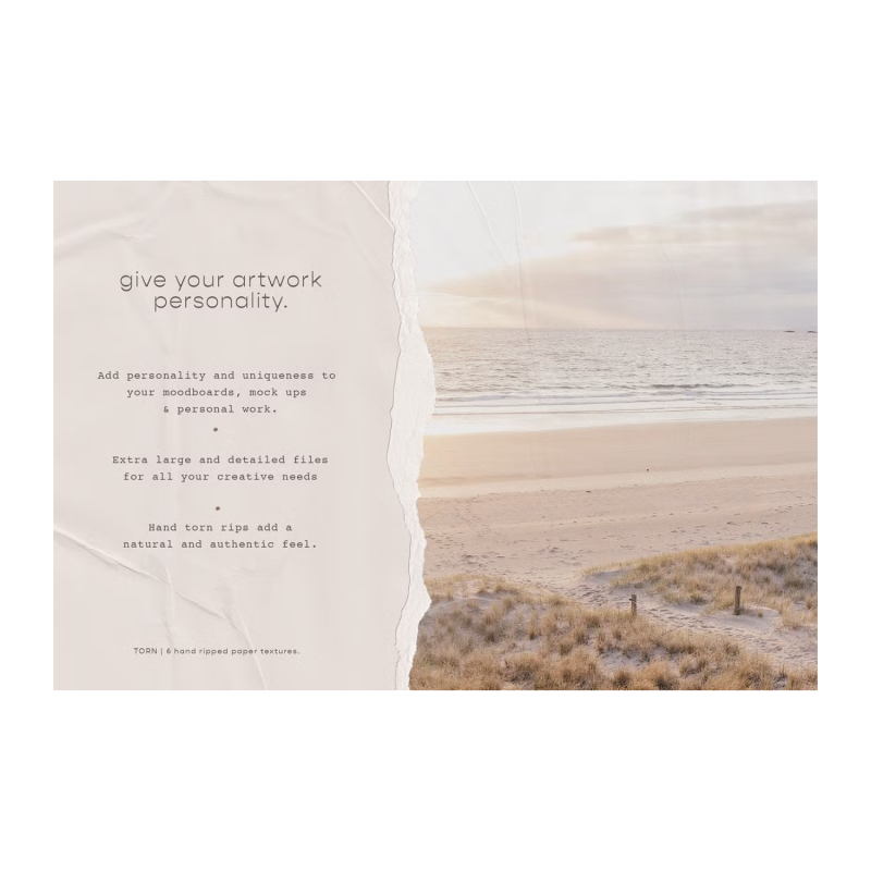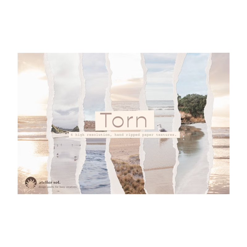 • 6 texturas de rasgado de papel de alta resolución (archivos PNG, 500 ppp)