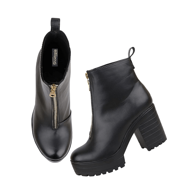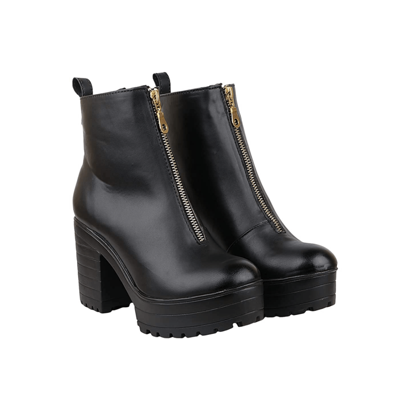 Botas de tacón de bloqueo de cremallera sólida para mujeres