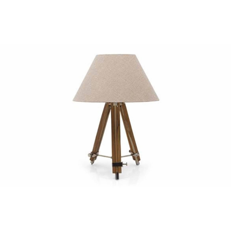 • Wee wooden delight. The Kepler Table lamp, made from teak and topped with a natural fabric shade. A graceful design crafted to complement any room its in.