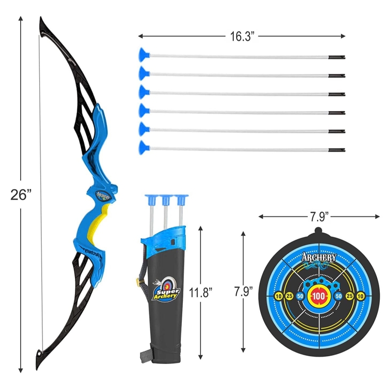 Included Components :1 Target, 3 Suction Cup Arrows, 1 Quiver, 1 Archery Set