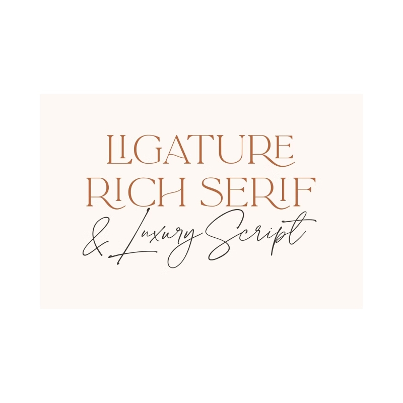 Indulge yourself in a luxurious typography pairing with La Luxes; a classic font duo consisting of an elegant Script & ligature-rich Serif. Also included in this product are 10 bonus logo templates, allowing you to easily edit the designs you see in the images above and create stunning logos in minutes. (Logo templates require Adobe Photoshop or Adobe Illustrator to open).