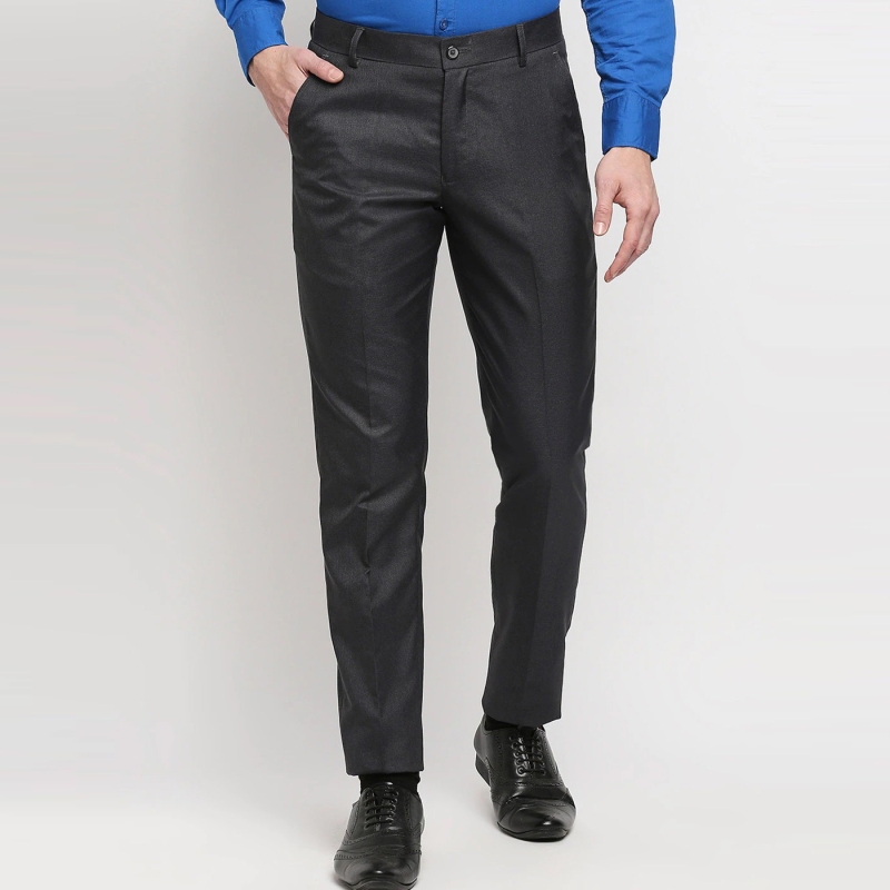 • Black solid mid-rise formal trousers, has a button closure, zip fly, and 5 pockets