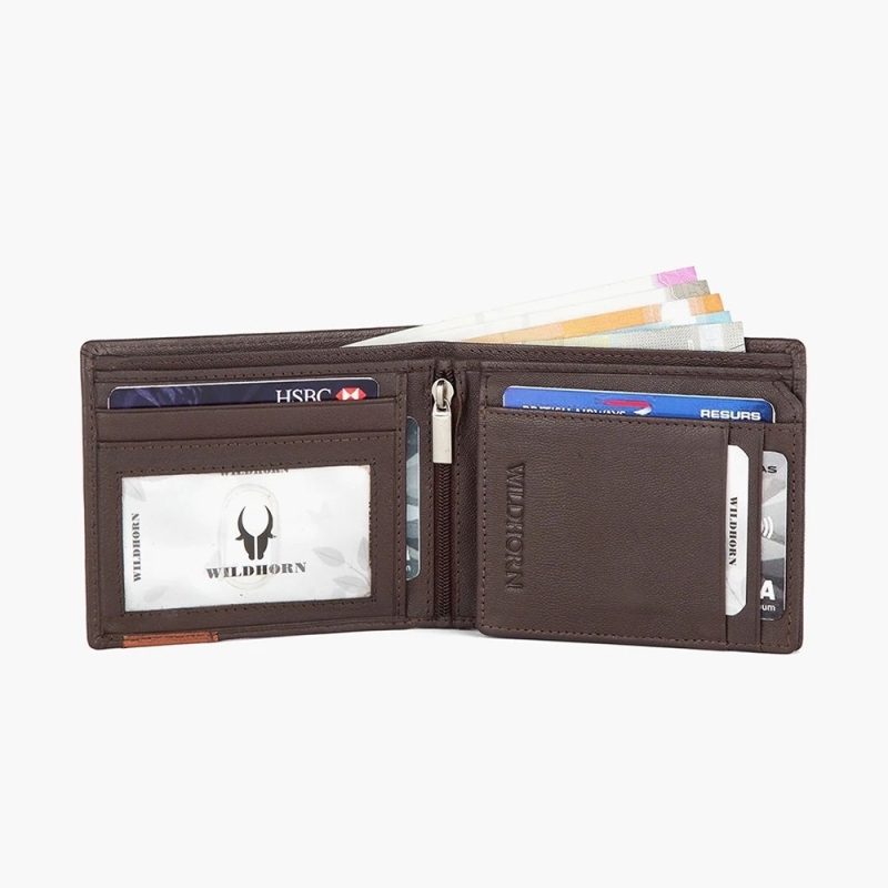 Men Brown Solid RFID Protected Leather Two Fold Wallet