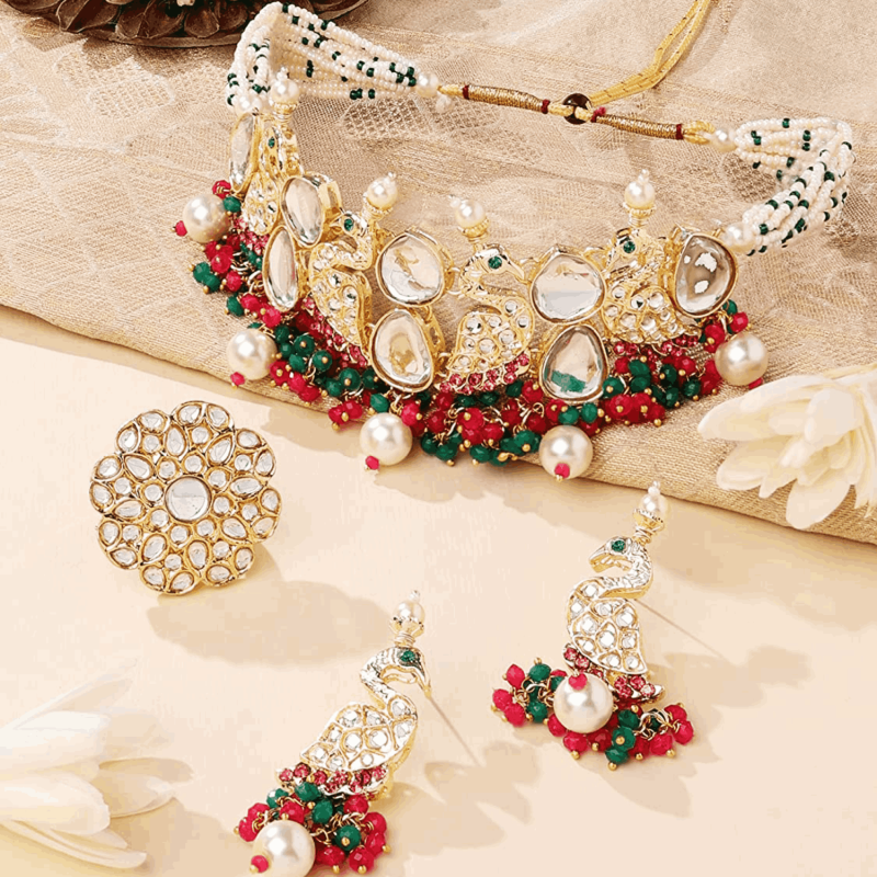 Feature: You can never go wrong with a choker necklace! Indian style choker necklaces have been a staple at bridal parties and traditional events since forever & why not? Beautifully crafted and bedazzled with gems they’re perfect with ethnic outfits! A choker necklace is the type of fashion accessory that has the potential to upgrade the simplest of traditional outfits! Wear it to traditional events or weddings. We thought why not save this gorgeousness for you!