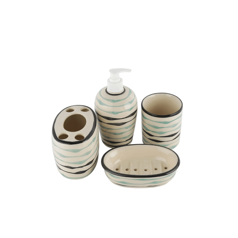 Package contains: 1 soap dispenser, 1 soap dish, 1 tumbler,1 brush holder