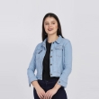 Blue solid lightweight denim jacket, has a spread collar, 2 pockets ,has a button closure, three-quarter sleeves, straight hemline, cotton lining.