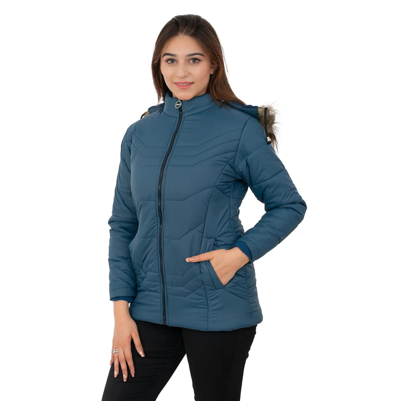 Women's Quilled Jacket Quilted Jacket Regular Fit Hooded Neck Jacket