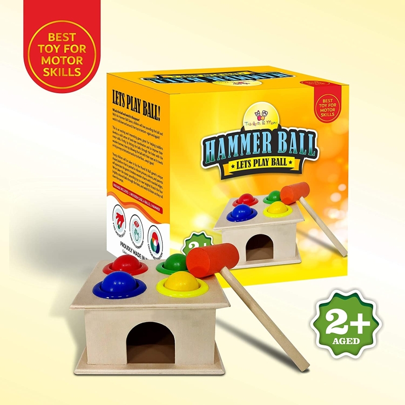 • Toys and Games; Brightly coloured, smooth-sanded pieces help build early shape, colour, and size differentiation skills.Hammer Ball will help develop gross & fine motor skills, hand-eye coordination and concentration inanition of relieving stress